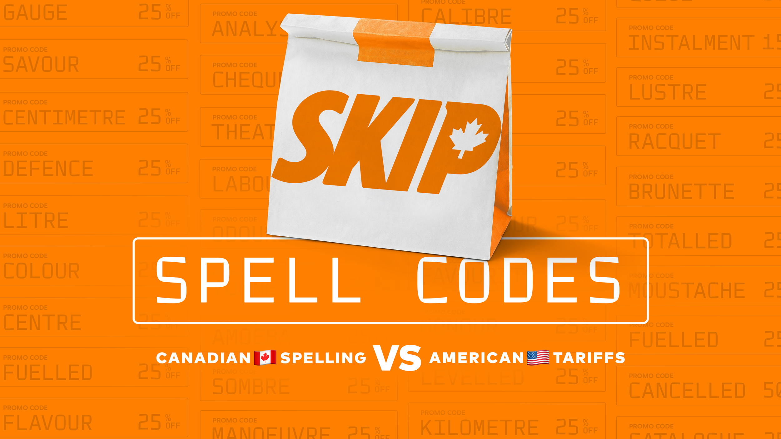Amidst a trade war, Skip, a Canadian-born delivery service, celebrated what makes Canada unique by turning Canadian-spelled words into discount codes. Hungry Canadians could unlock 15% off their orders just by spelling words the Canadian way.
